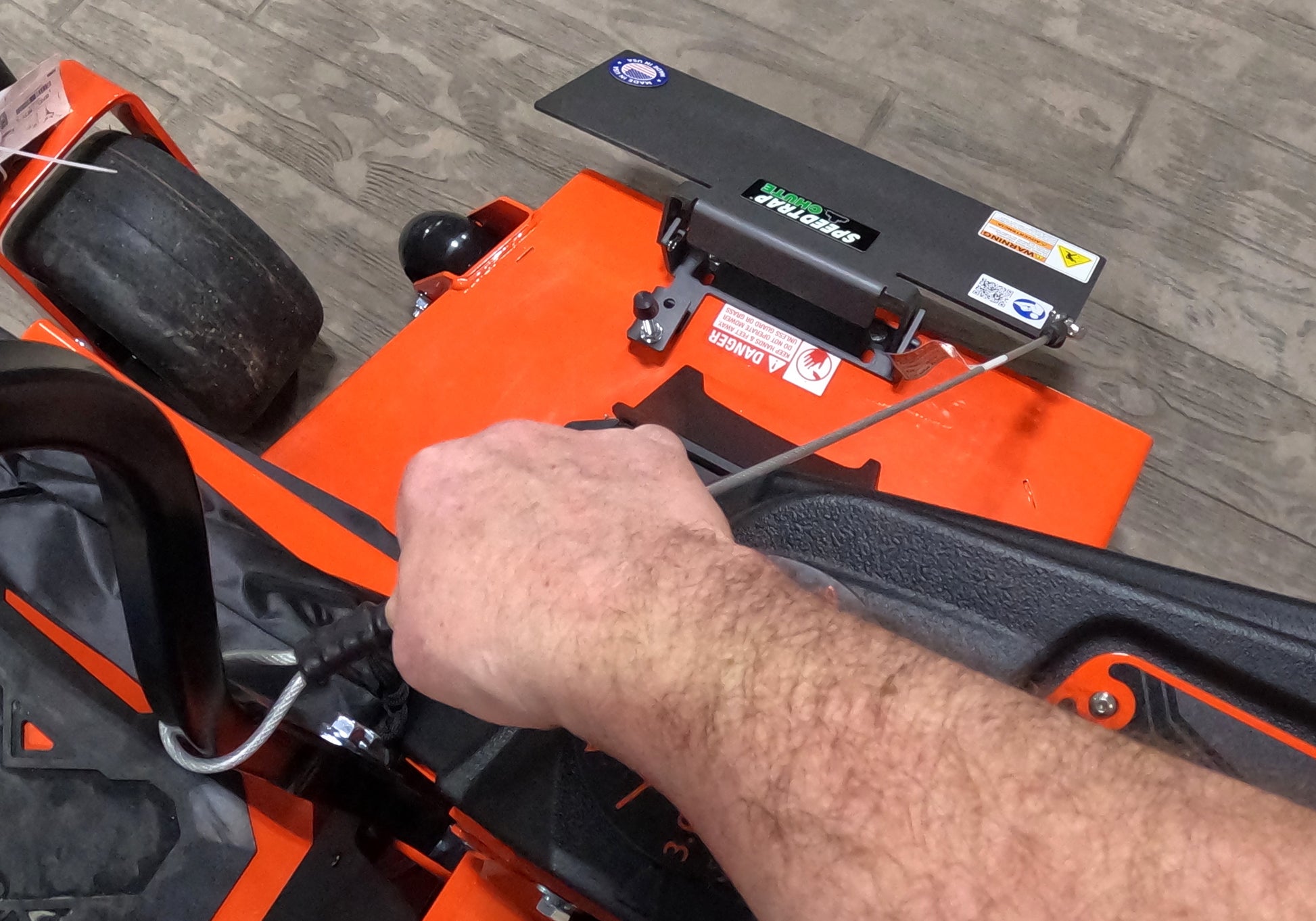 - MulchMod™ equipped. MulchMod™ allows the Speedtrap® to stay closed by simply installing two pins. Aids in leaf work and mulching in general. (Shown in last pic)